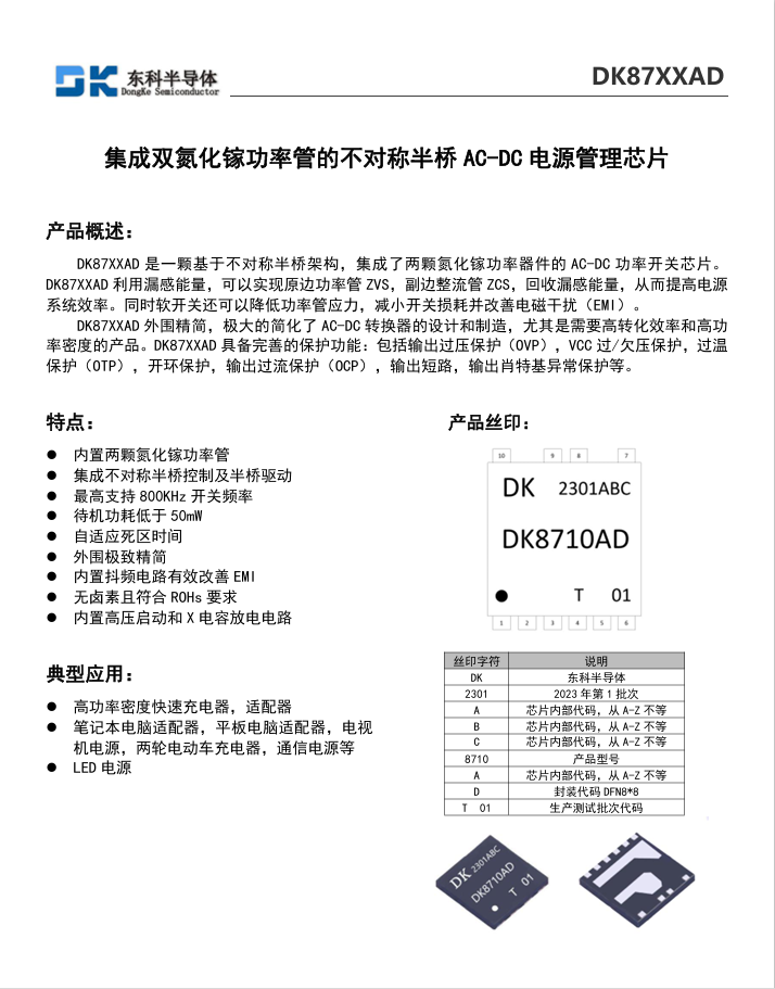 東科半導(dǎo)體(安徽)股份有限公司是國內(nèi)為數(shù)不多的集研發(fā)、設(shè)計(jì)、生產(chǎn)、銷售為一體的集成電路科技創(chuàng)新型企業(yè),是國家級(jí)專精特新小巨人企業(yè),2022年榮獲安徽省專精特新50強(qiáng)企業(yè)。公司分別在青島、北京、無錫、馬鞍山、深圳設(shè)立有5個(gè)研發(fā)中心,一個(gè)封測(cè)基地。公司采用市場(chǎng)少有的“Fabless+封測(cè)”的經(jīng)營模式,在具備自主芯片設(shè)計(jì)能力的同時(shí),擁有自主封測(cè)能力。公司產(chǎn)品主要方向是高性能模擬和數(shù)?;旌项愲娫垂芾硇酒?,第三代化合物半導(dǎo)體電源管理芯片和其他模擬類芯片。
